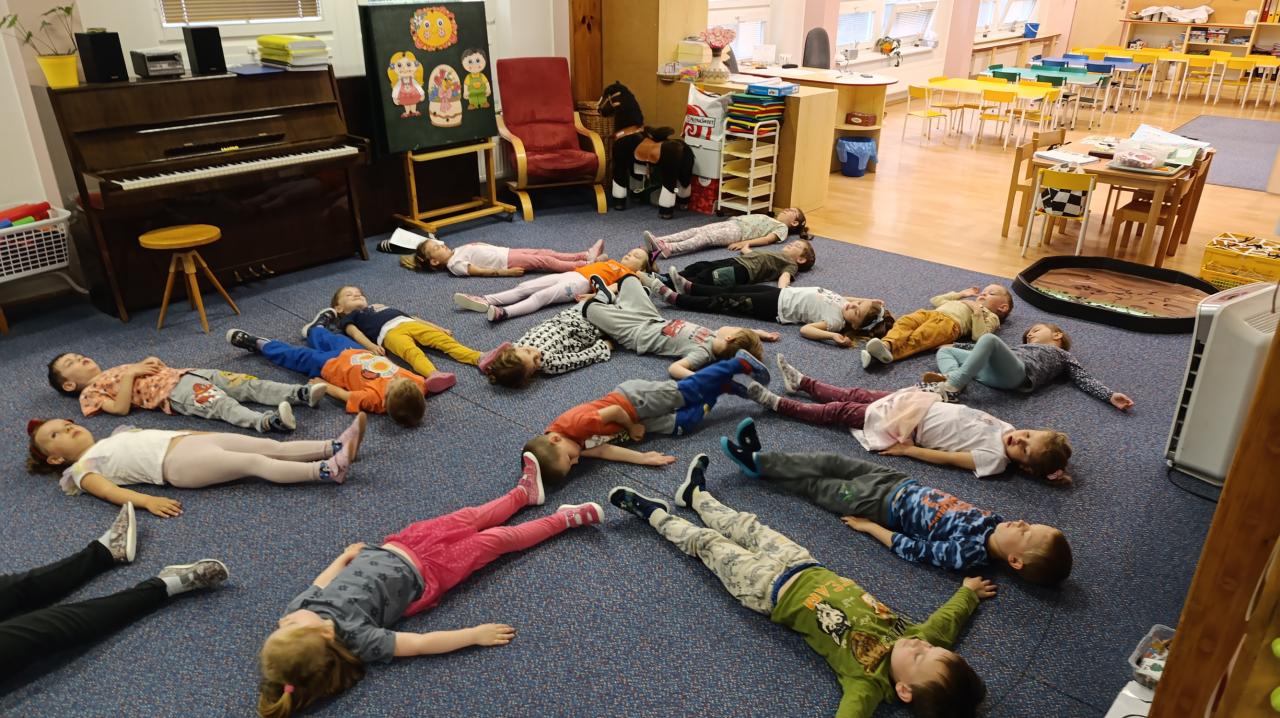 Hrajeme si, kreslíme, cvičíme celý den.